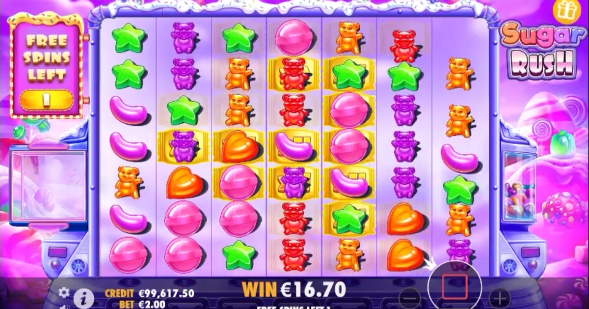 《Sugar Rush》采用的是高波动老虎机设计,核心玩法包括多条奖励线、符号连锁和免费旋转模式。游戏中最具吸引力的部分是“糖果连锁爆分”机制:当特定符号连续出现时,奖励倍数会迅速叠加,形成短时间内的大额奖金输出。